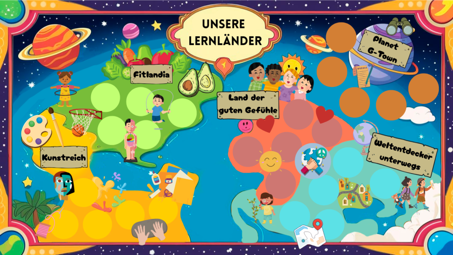 Durch das Konzept der Lernländer verbinden wir praxisnahes Lernen mit den Kompetenzen der Rahmenpläne. Inhalte, die in den Lernländern erarbeitet werden, müssen an anderen Wochentagen nicht erneut behandelt werden. Die Lernfortschritte der Kinder werden im Lernland-Pass am Ende eines Blocks mit einem Stempel dokumentiert.